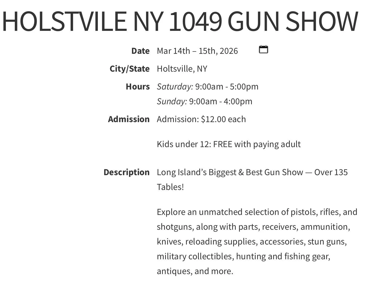 South Shore Waterfowler’s will be attending the annual gun show at IBEW Local 1049 located in Holtsville, information below. Come on down to stop by and see what SSWA has to offer YOU!